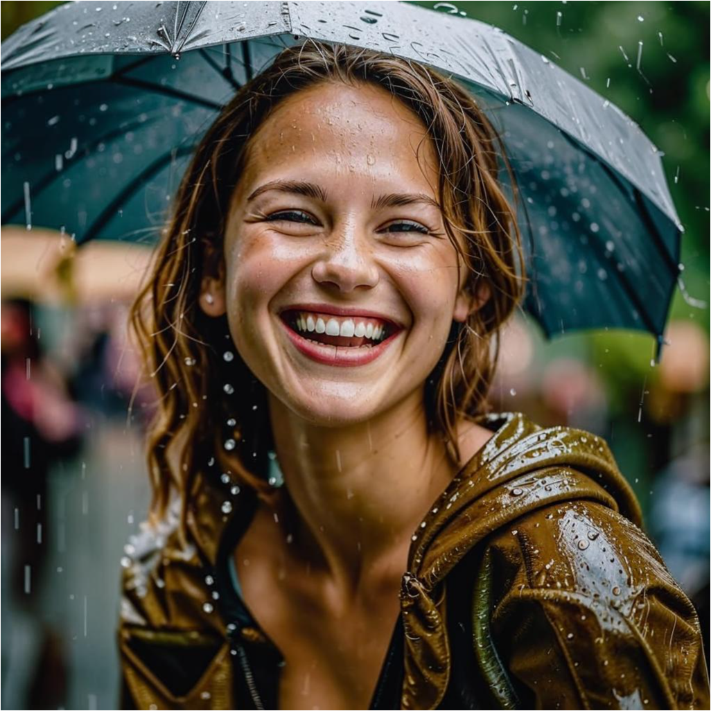 – Не, спасибо, я лучше под дождиком прогуляюсь! Дождик славный такой, тёпленький!