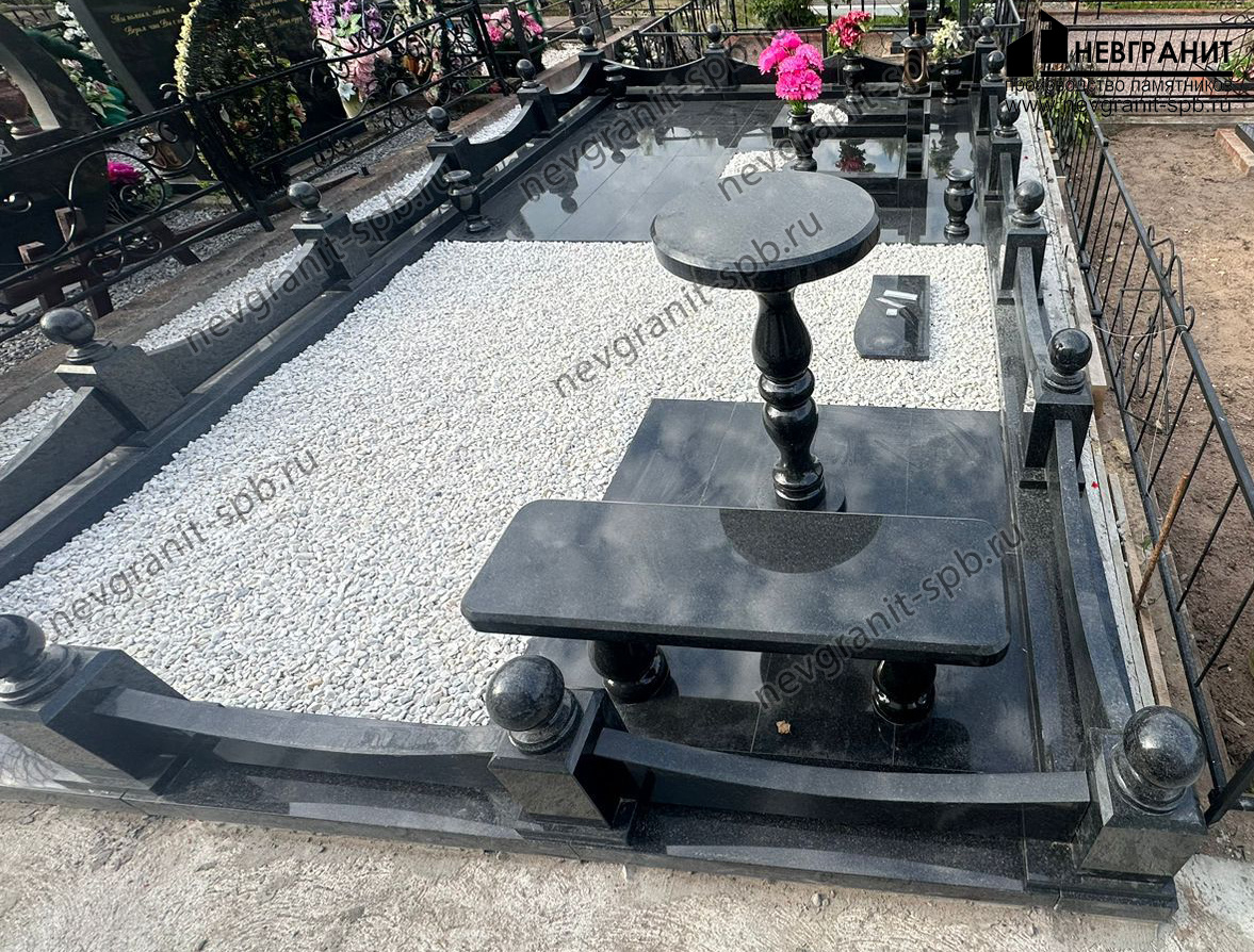 - Возможность установки дополнительных элементов: на гранитную крошку можно легко установить памятник, ограду, столик, скамейку и другие элементы благоустройства.