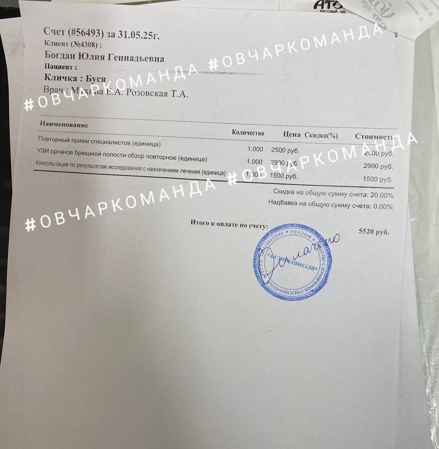 🤝Друзья, отчет наших расходов на обследования Амры и Буси 31.05.2025: 🔸Буся: приём, УЗИ - 5520р Анализ крови - 4539р 🔸Амра: приём, УЗИ, ЭХО сердца - 7760р Анализ крови - 4539р 🔹Зоотакси - 8000 ----------- Итог: 30 358р. #овчаркоманда