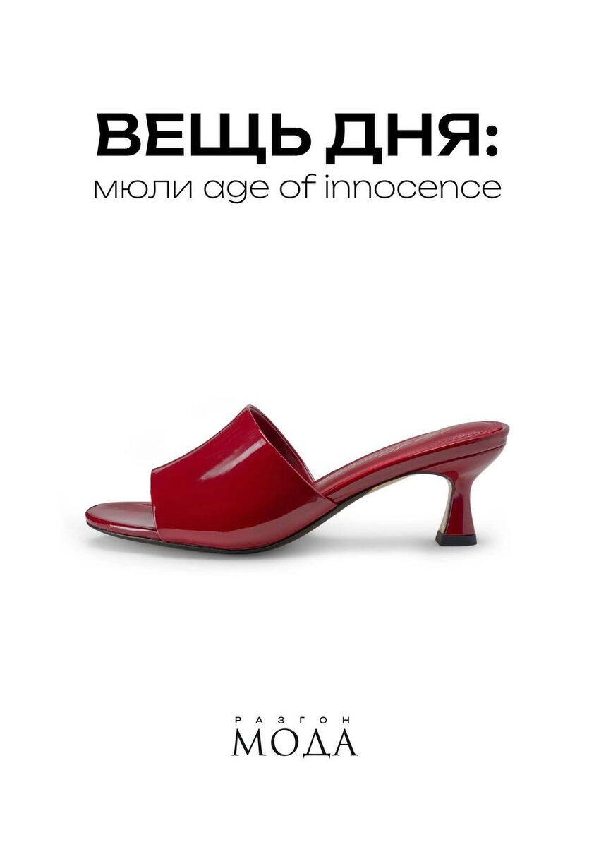Нашли просто божественные мюли — как будто специально для винных ценителей. Красный лак, идеальная высота каблука (не убьёшься на танцах до утра), и смотрятся дорого даже с джинсами. Только представьте: отпуск, закат, бокал чего-нибудь игристого, и вот эти чудесные мюли Age of Innocence — всё, образ сложился. #РазгонМода_ВещьДня