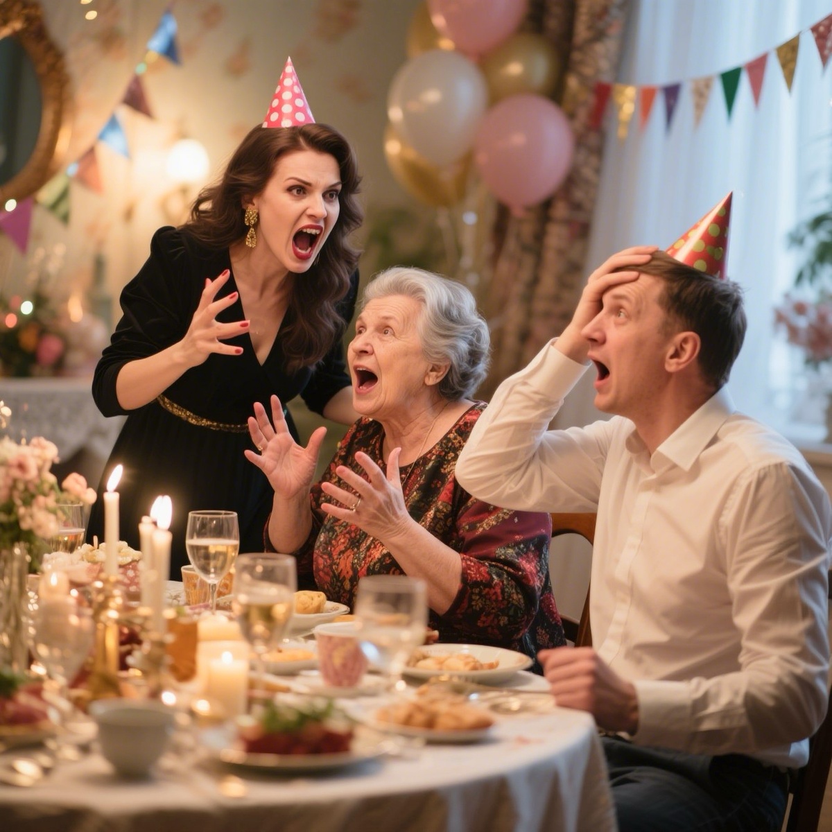 Родственники переглядывались, кто-то неловко покашлял, кто-то потянулся за телефоном — явно готовясь заснять развивающийся скандал.