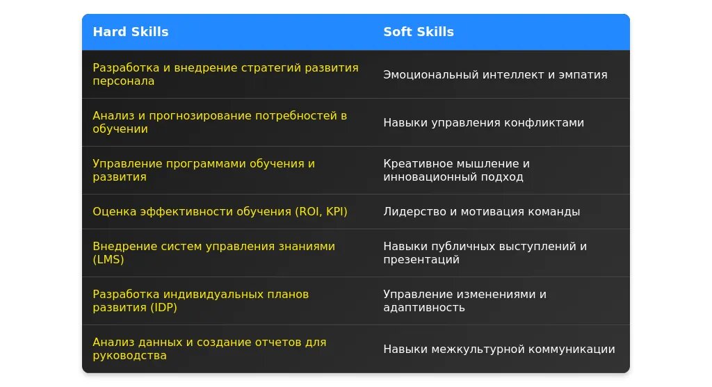 Пример 1: Вакансия указывает на необходимость "разработки и внедрения программ обучения". Это обязательное требование, так как без него кандидат не сможет выполнять основные функции.