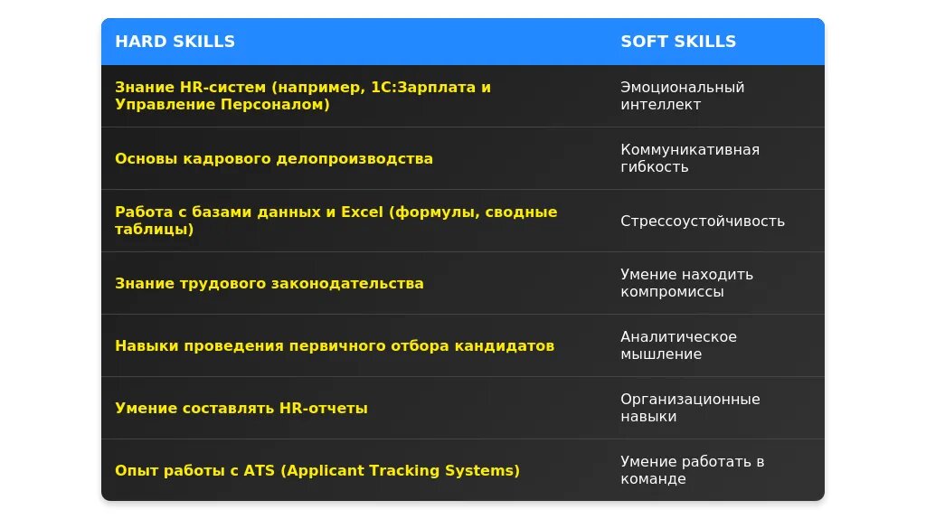 - Готовность к обучению: прохождение курсов по HR и кадровому делопроизводству.
