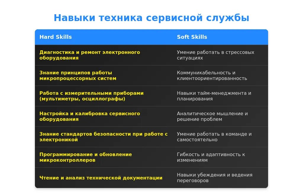 Технические навыки для техника сервисной службы