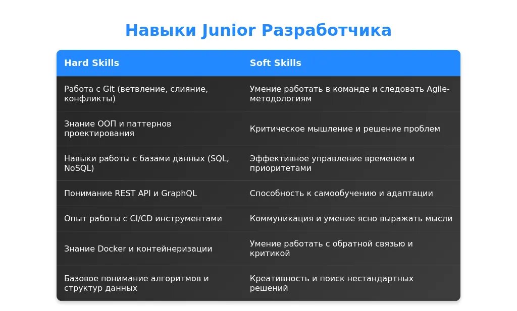 Качества и навыки: Акцент на обучаемость, базовые технические навыки, интерес к технологиям.