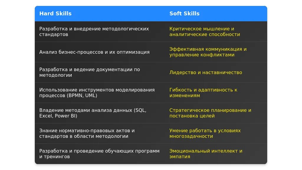Анализ требований вакансии для профессии "ведущий специалист отдела методологии"