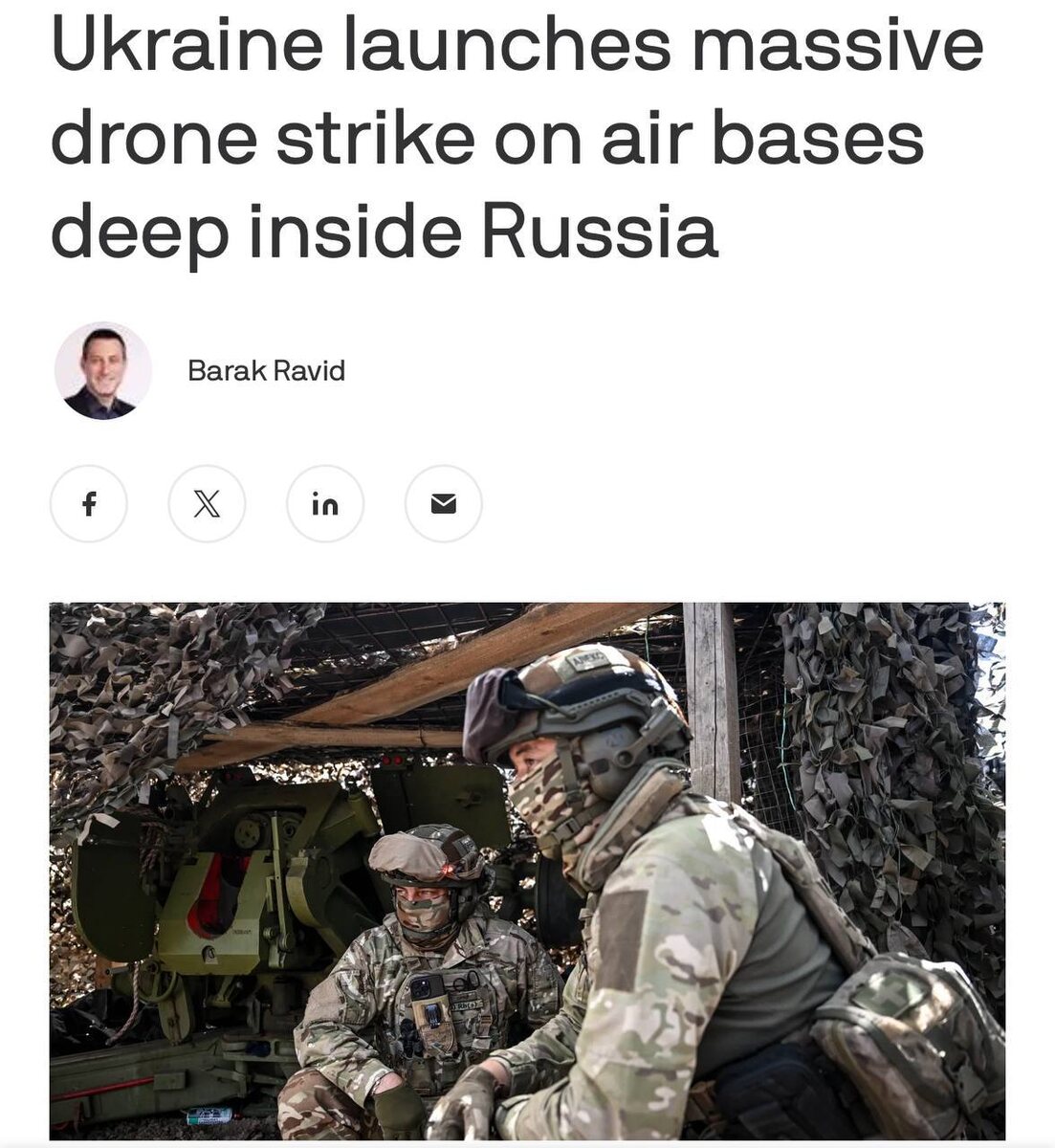 Украина заранее уведомила администрацию Трампа об атаках на российские авиабазы, — Axios со ссылкой на украинского чиновника.