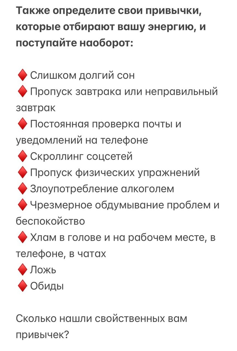 Также определите негативные привычки, которые забирают у вас слишком много энергии