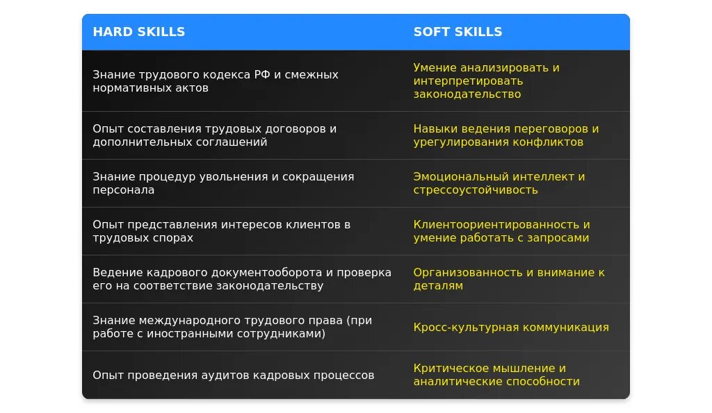 После адаптации: "Глубокое знание ТК РФ и судебной практики по трудовым спорам."