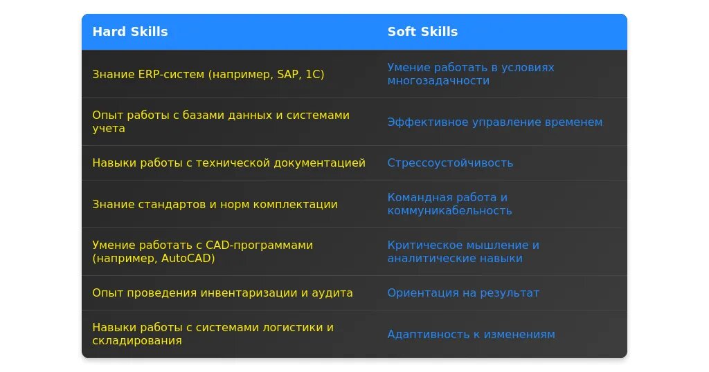 Анализ требований вакансии для специалиста по комплектации