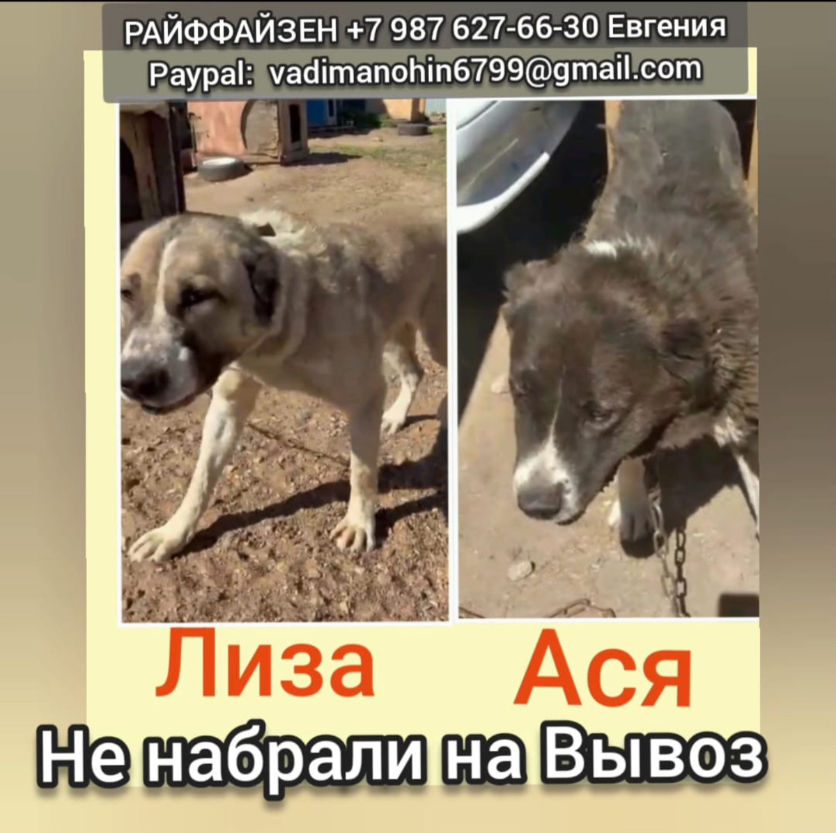 Не набрали на Вывоз! Ася и Лизонька. Люди, помогите Вывезти Девчонок. 31 мая..На них откликнулась куратор из Владимира!!.. Это Настоящее ЧУДО! ОТКЛИК! ДЕВОЧЕК ЖДУТ! Они так ждут Вывоза, так волнуются, что сбор затянулся.....😭, что не можем собрать им на Вывоз.... Друзья, нам нужно оплатить им билетики в счастливую жизнь 🙏🙏🙏 Давайте поможем Лизоньке и Асе остаться в живых и уехать к куратору для лечения и пристроя 🙏🏼 Цена Их СЧАСТЬЯ ⚡15.000 руб⚡ Рейс Петс Тур Уфа --> Владимирская область Любая сумма важна, каждая жизнь - бесценна 🙏🙏🙏 ✔️ карта Райфайзен номер: 2200 3005 8418 6264 привязана к телефону +7 987 627-66-30 ЕвгениЯ с обязательной пометкой "Отлов УФА Вывоз Лиза Ася" ✔️ Paypal: vadimanohin6799@gmail.com с ОБЯЗАТЕЛЬНОЙ пометкой "Отлов УФА Вывоз Лиза Ася" Личный контакт волонтёра: +7 987 627-66-30 (телефон и ватсап) Евгения Пожалуйста, подписывайтесь на наши каналы, чтобы быть в курсе новостей, сбора, вывозов.... Задать любые вопросы по Собакам, посмотре