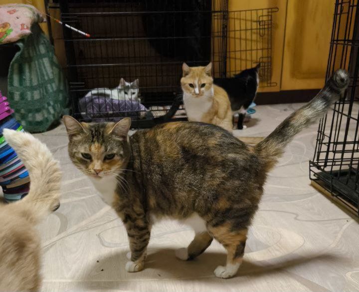 На первом фото Шила, сзади рыжий Маркиз, в клетке лежит спинальница Рыбка.