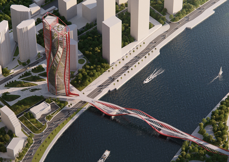В Москве, напротив ЗИЛа, на Варшавском проспекте, планируется строительство нового небоскреба, который будет соединяться с другим берегом главной реки столицы мостовым переходом. Концепция этого амбициозного проекта, разработанная архитектурным бюро Atrium, была представлена на выставке «АРХ Москва» в конце мая 2025 года, и уже успела получить положительные отклики от экспертов в области архитектуры. Дмитрий Михеев, основатель компании "АрхитектурНО", занимающейся премиальными строительными материалами, а также ведущий одноименного медиапроекта, посвященного архитектуре и бизнесу, отмечает: — Новый проект на Варшавском шоссе является образцовым примером современной архитектуры. Спиралевидный фасад здания не только создает впечатляющий визуальный образ, но и демонстрирует сложность своей реализации. С технической точки зрения этот проект подчеркивает высокий уровень мастерства и инновационного подхода. Особенно стоит отметить, что эту задачу берет на себя компания, имеющая за плечами зн