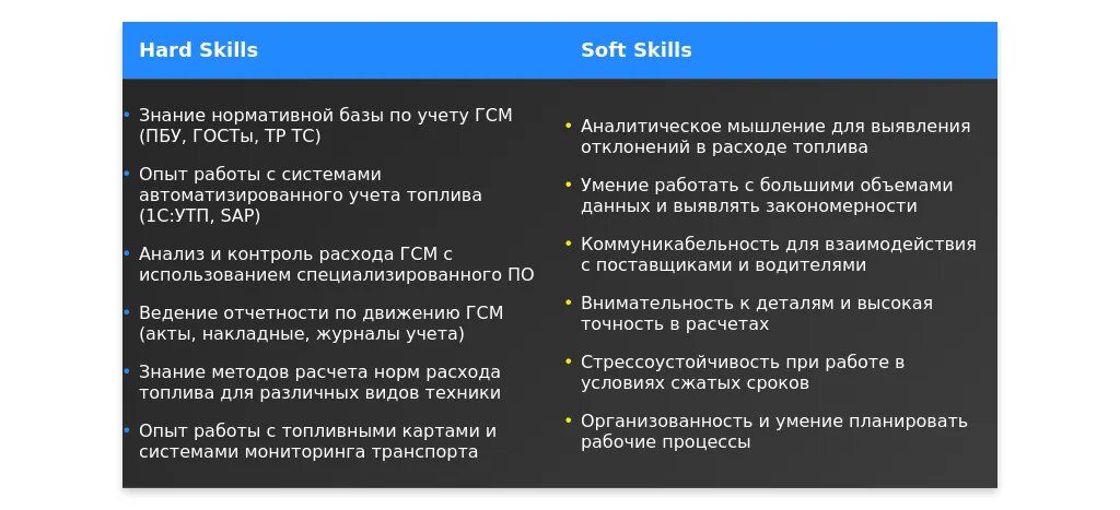 Анализ требований вакансии для специалиста по учету ГСМ