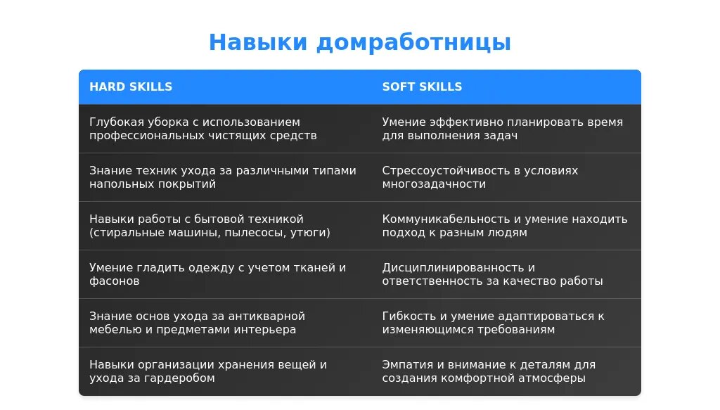 - Переоценка опыта: "Я знаю всё о домоводстве". Лучше: "Имею опыт в уборке, стирке и организации пространства".