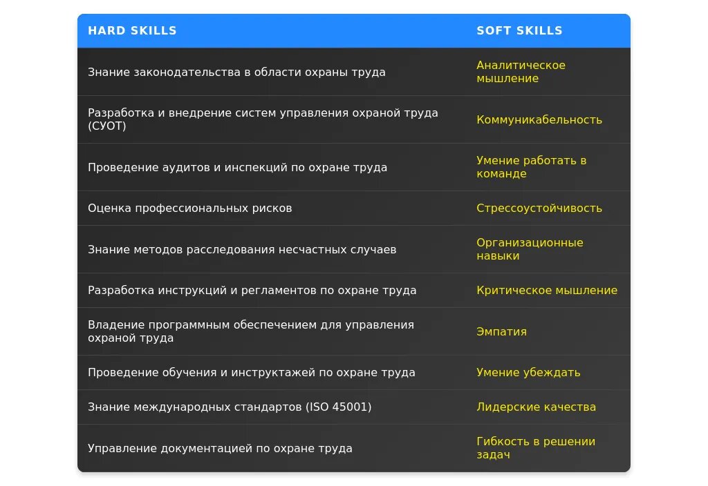 После адаптации: "Знание ISO 45001, разработка локальных нормативных актов, проведение аудитов, обучение персонала."