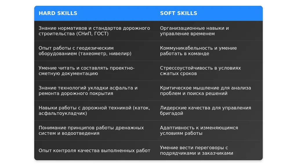 Анализ вакансии для профессии "дорожный мастер"