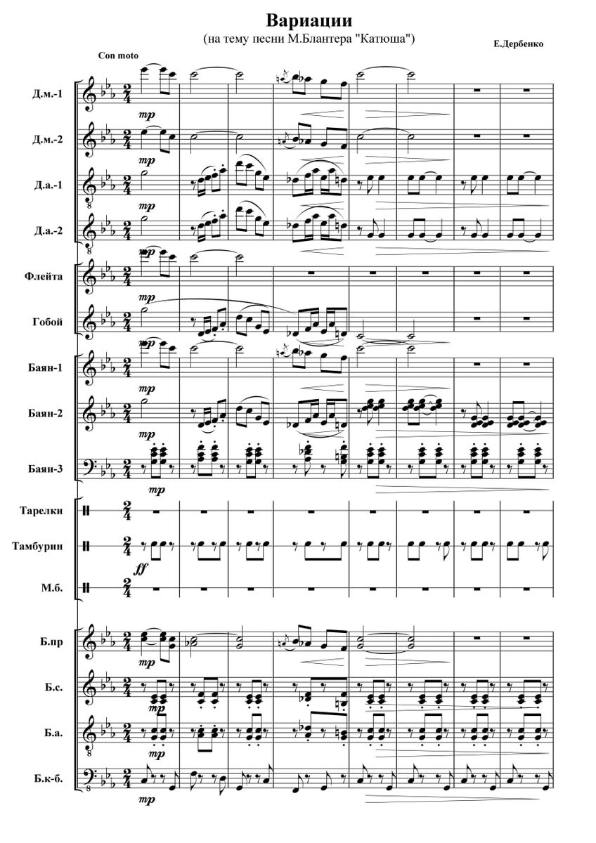 https://partitur.ru/Partitura/В.Partitura.html Новая партитура‼️ "Вариации на тему песни М.Блантера "Катюша" Обр. Е.Дербенко Переложение и инструментовка М.Сафин. Пьеса для оркестра(без голоса и солиста) Стоимость партитуры смотрите в начале этого поста по ссылке, на сайте Partitur.ru.