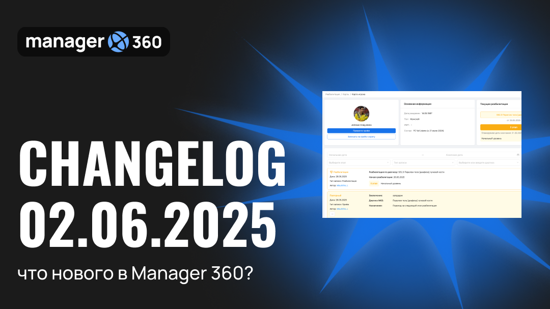 Продолжаем двигаться вперёд и добавлять то, что делает вашу работу ещё комфортнее. В этом обновлении — полезные фичи, улучшения интерфейса и оптимизация процессов. Всё по делу и на основе ваших отзывов! 🆕 Что нового: 👨⚕️Настройка профиля сотрудника из медцентра 💊 Реабилитация -- новый крупный раздел, ждите подробностей в отдельном посте 🔄 Добавление кнопки запуска синхронизации интеграции 📊 Кастомизация антропометрии Плюс к этому: 🐞 Почистили баги 📊 Улучшили скорость загрузки и стабильность 🔧 Подготовили платформу к следующим крупным функциям Обновление уже доступно — загляните в платформу, протестируйте и обязательно напишите, что думаете. Мы делаем Manager 360 вместе с вами! 💬👇