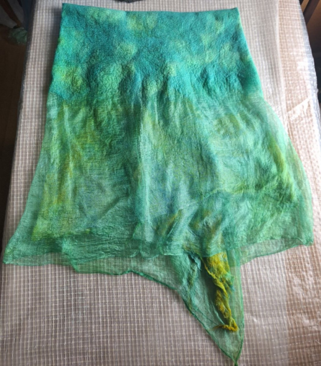 Отправляю юбку на просушку. Потом останется все подшить, где это необходимо и можно в ней щеголять летом.... #работамесяца #клубшерстяныхфей #летнийвойлок