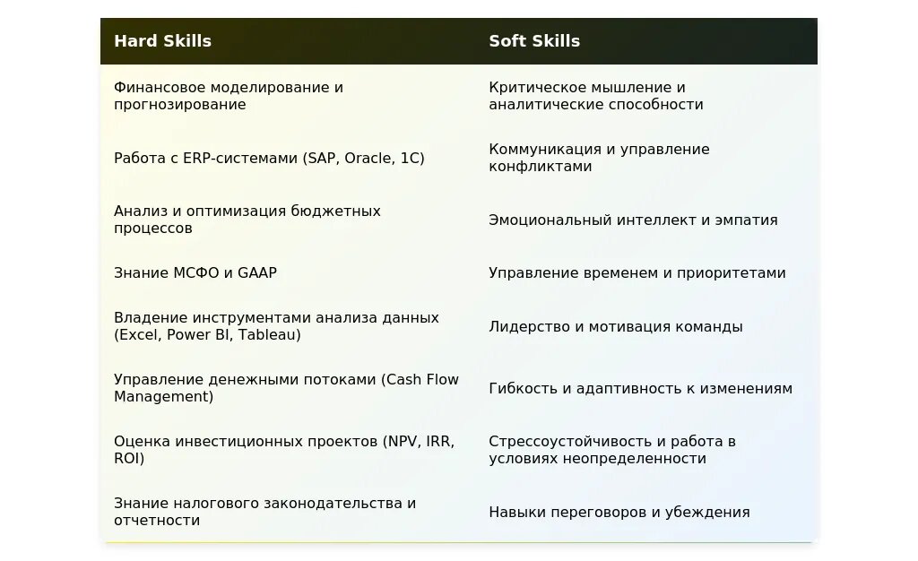 До адаптации: "Навыки работы с бюджетами, знание 1С, аналитические способности."
