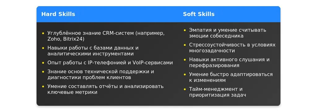 Пример 3: "Опыт работы в крупных call-центрах — 4 года. Владею навыками работы с CRM-системами (Zendesk, Bitrix24). Организовал обучение новых сотрудников, что повысило их эффективность на 25%."