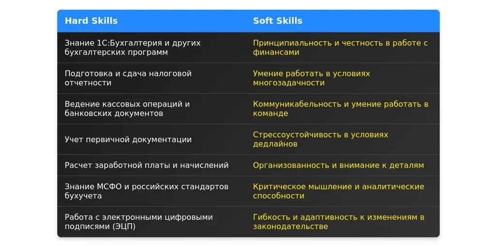 ❌ Плохо: "Знание бухгалтерии."