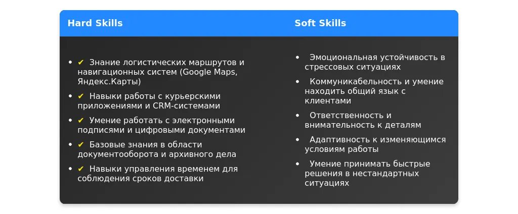 Soft skills — это личные качества, которые помогают эффективно выполнять работу. Вот топ-10 важных качеств для курьера:
