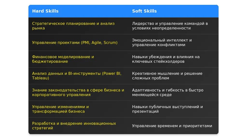 После: "Agile-методологии, стратегическое планирование, управление командой."