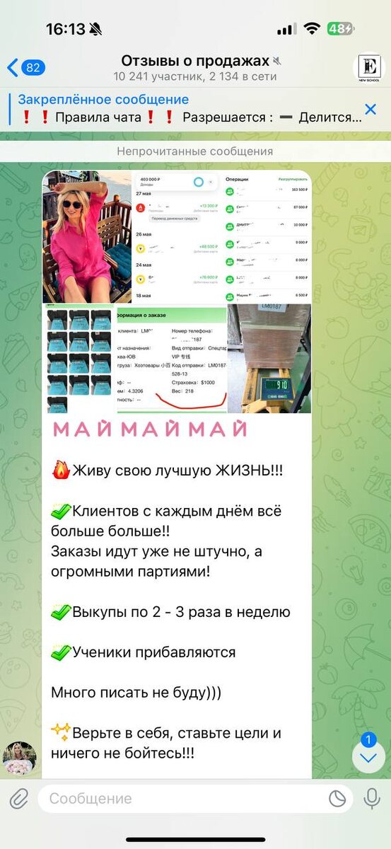‼️Делюсь еще свежими отзывами с чата за май. 📥одни продают доступ на курс 📥другие продают одежду из Китая и др стран 📥третьи совмещают 📥другие привозят под заказ 👉🏾 и параллельно все экономят десятки тысяч в месяц на покупках для семьи. ❗️ доступ в проект окупается с одного заказа в Китае 👌🏾, а курс останется с вами НАВСЕГДА. ✔️ Присоединяйся к нам и начинай выгодный шопинг @oxxssss ▪️Оплатить можно кредиткой, долями, рассрочкой и переводом.