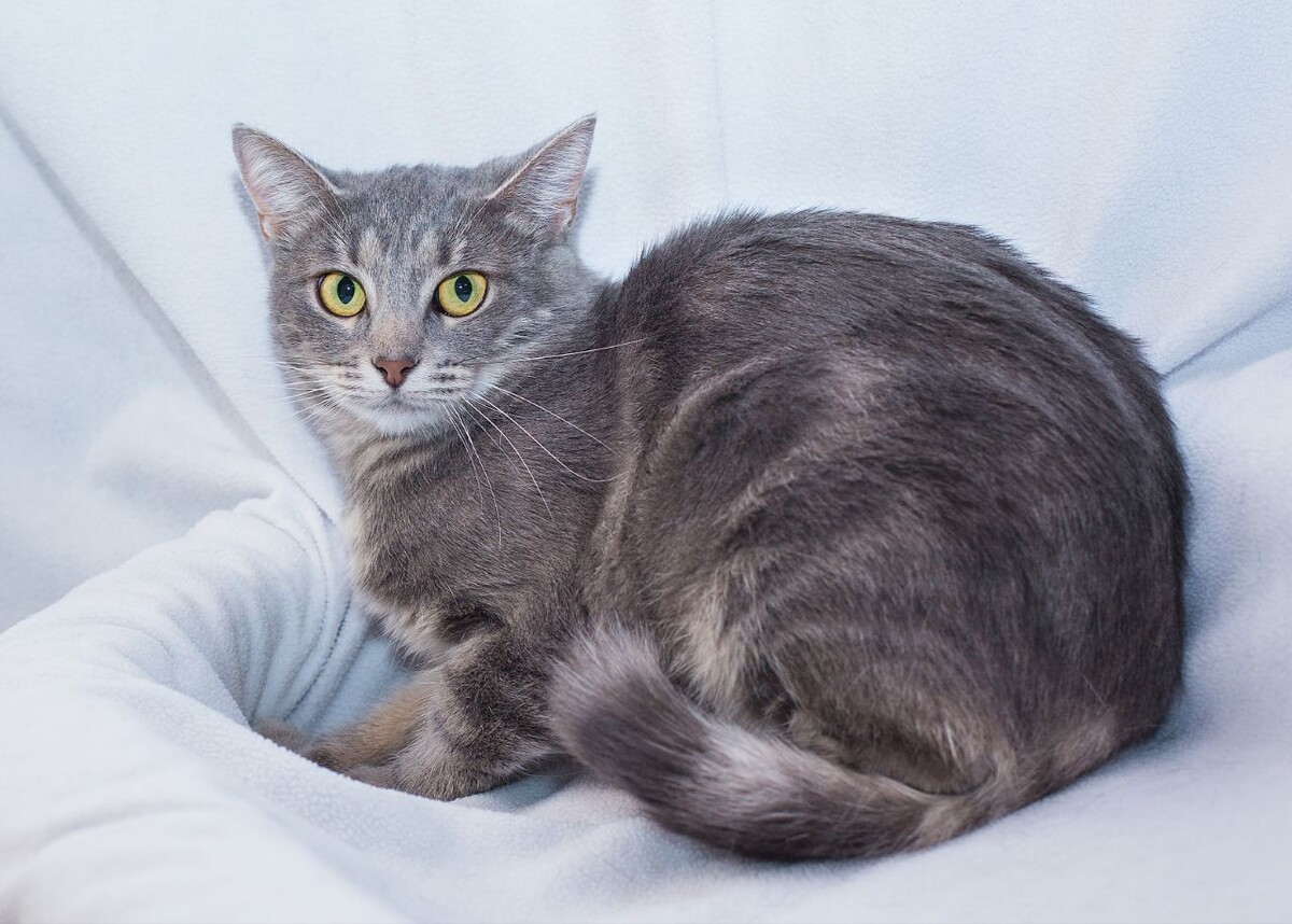 По характеру ласковая, но осторожная поначалу. А вот с котиками она прекрасно ладит с первого знакомства, так что прекрасно может жить в новом доме компании сородичей.