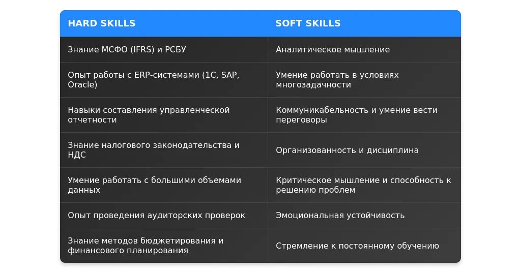 После: "1С (углубленное знание), SAP, английский язык (уровень Intermediate), налоговая отчетность."