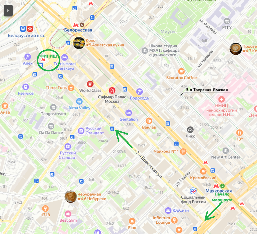 Прогулку начнем с Триумфальной площади, которая в советский период гордо носила имя великого русского поэта Владимира Маяковского.