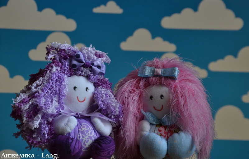 Сегодня Международный день защиты детей. И в этот день мне захотелось рассказать историю про моих домовушек. Кроме вышивки я еще и игрушки иногда шью) Итак, начнём. Это было очень давно, когда на свете жили разные сказочные существа. Жили они везде: и в лесах, и в полях, и в водоемах, и на облаках. Да-да! На облаках тоже жили маленькие сказочные человечки. И вот что интересно, если человечек был злой, то его облачко становилось темным. А вот на белых облаках жили добрые человечки. А еще они были такими же пушистыми как сами облака. На одном облаке жили подружки Розочка и Фиалочка. Они много веселились, придумывали разные шутки и заразительно смеялись. А еще подружкам нравилось делать друг дружке прически. Тем более, что шевелюры у них были густыми и пушистыми. Все жители Облачного царства имели свое дело, которое приносило им радость и удовольствие. Розочка с Фиалочкой занимались садоводством. У них был небольшой палисадник, в котором они выращивали цветы. А когда они их поливал