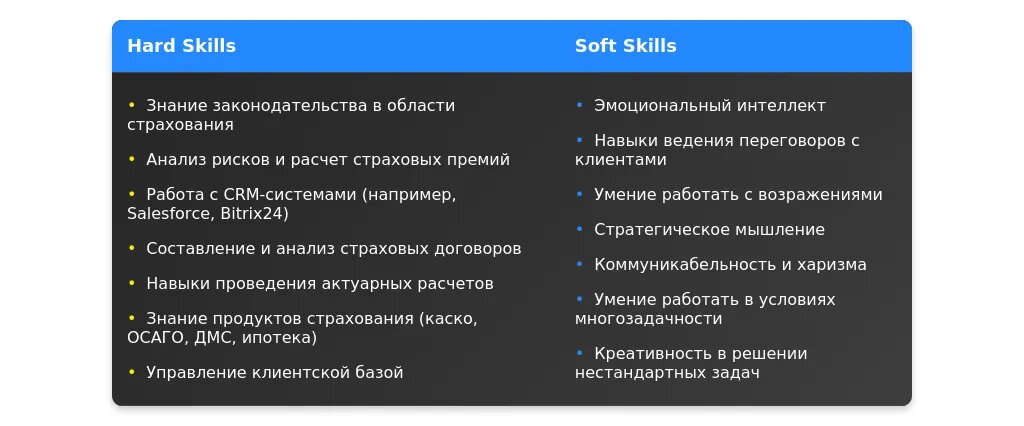 После: "Навыки ведения переговоров, работа с CRM-системами, знание страховых продуктов."