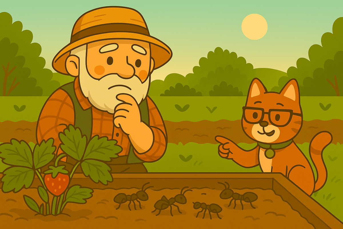 Семёныч тут с утра вышел на клубнику — а там копают! Не кроты, не дети — а муравьи! Думаете, друзья? Не всегда... Иногда — вредители. Особенно, если тянут за собой тлю, как пастухи стадо. 🔹 Некоторые муравьи (вроде чёрных садовых) разводят тлю, пасут её, охраняют от божьих коровок и разносят с куста на куст.