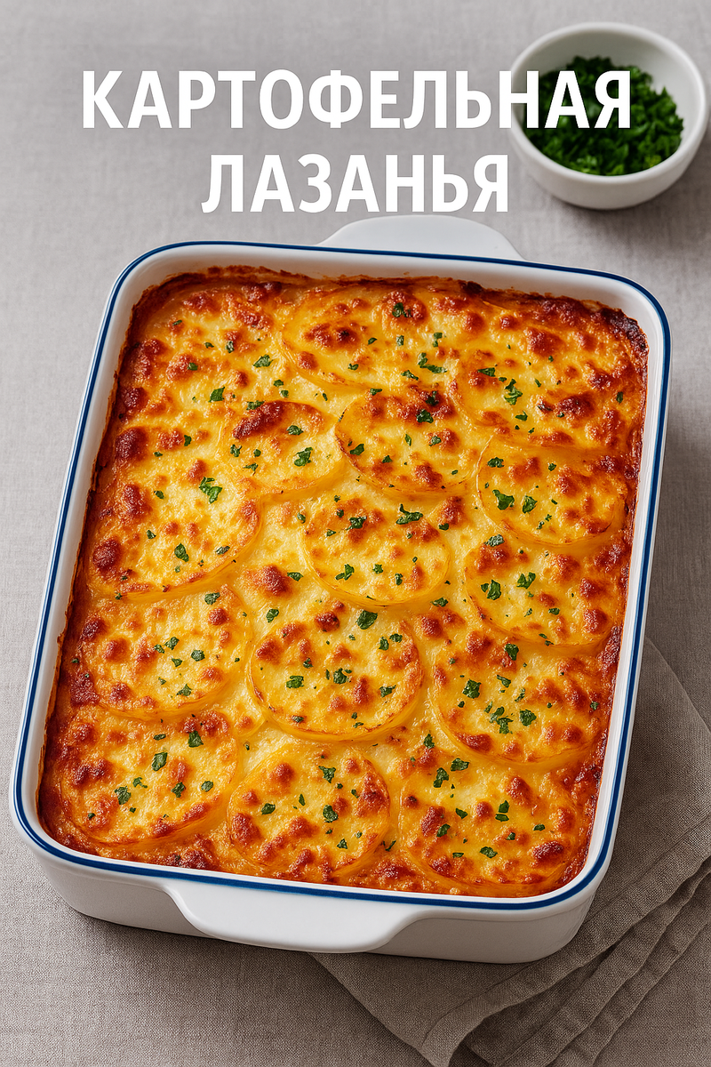 Картофельная лазанья — это вариация классической итальянской лазаньи, где вместо листов пасты используется тонко нарезанный картофель. Блюдо получается более нежным, питательным и особенно уютным. Оно идеально подходит для семейного ужина или тёплой встречи с друзьями. В этой статье мы подробно расскажем, как приготовить картофельную лазанью в домашних условиях: пошагово, с советами и нюансами, чтобы она получилась вкусной и аппетитной с первого раза. Для основы: Для мясного соуса (болоньезе): Для соуса бешамель: Дополнительно: Совет: Чтобы картофель гарантированно пропёкся, можно на 5–7 минут опустить нарезанные пластины в кипящую воду, затем откинуть на дуршлаг и обсушить. Консистенция должна напоминать жидкую сметану. Картофельную лазанью лучше подавать с лёгким салатом из свежих овощей или зелени. В качестве напитка подойдёт сухое красное вино или лимонад с травами. Заключение Картофельная лазанья — это сытное, ароматное блюдо, которое может стать вашей любимой альтернативой