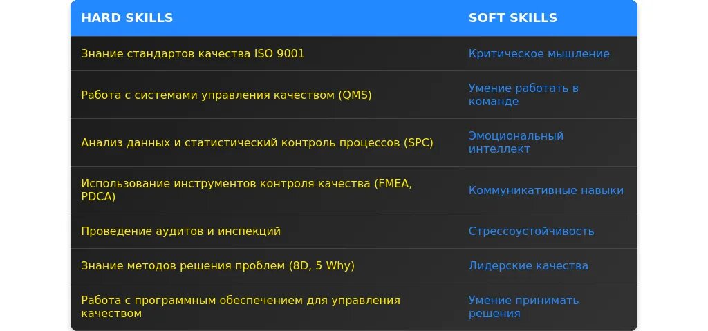 - Умение разрабатывать и внедрять системы контроля качества.