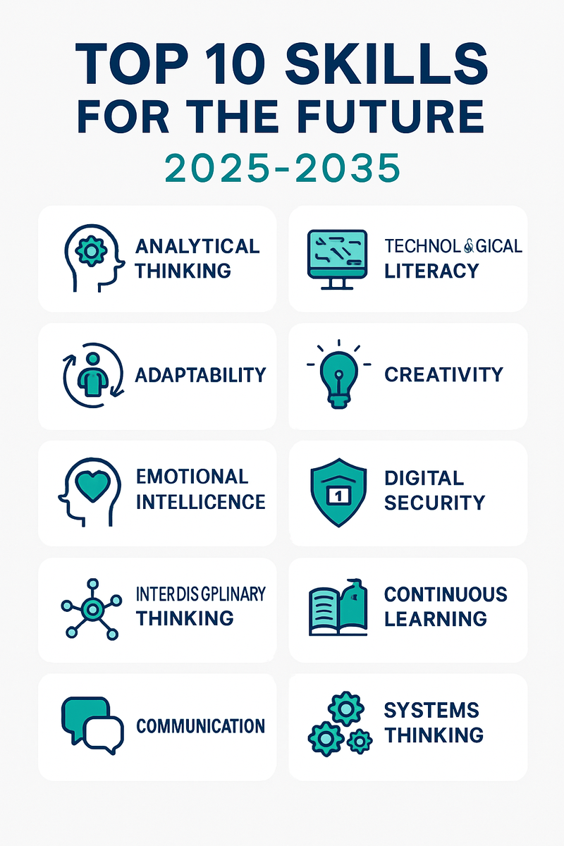 На основе анализа отчетов Всемирного экономического форума, исследований LinkedIn и экспертных прогнозов, мы выделили 10 ключевых навыков, которые будут наиболее востребованы в ближайшие 5-10 лет.