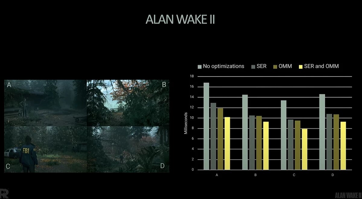 Компания Microsoft опубликовала новую версию Agility SDK DirectX, которая добавляет в популярное API новые технологии — реорганизацию выполнения шейдеров и микрокарты прозрачности. В частности обновление должно принести с собой заметный прирост производительности видеокарт NVIDIA при работе с трассировкой лучей. https://youtu.be/CR-5FhfF5kQ?t=657 Для примера прироста производительности нам показывали Alan Wake 2 с трассировкой путей. Благодаря новым технологиям время рендера одного кадра на RTX 4090 сокращается фактически на 40% в отдельных сценах. В открытом доступе новых игр или обновлений для существующих со свежей версией DirectX в данный момент нет, а потому самостоятельно все проверить не выйдет.