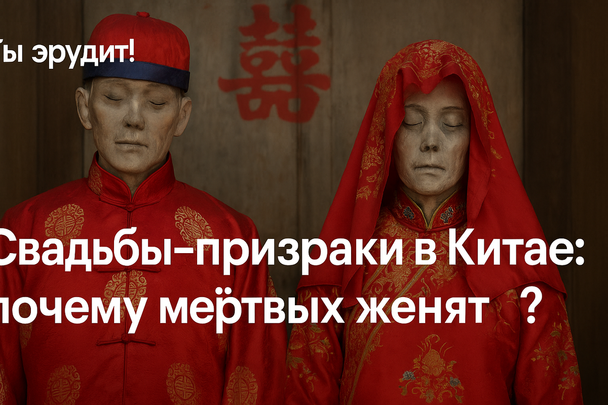 Свадьбы-призраки в Китае: почему мёртвых женят? Вы когда-нибудь слышали про свадьбы для мёртвых? В Китае существует древний обычай, известный как "свадьба-призрак" — это таинственный обряд, когда женят уже умерших людей. Зачем? Давайте разберёмся! Эта практика возникла более 2000 лет назад. Древние китайцы верили: если человек умирает молодым и не женатым, его дух будет одинок и несчастен. Считалось, что такой дух может вернуться, чтобы беспокоить живых родственников. Свадьба-призрак помогает "успокоить" умершего — теперь у него есть семья и покой. Такие свадьбы могут быть разными. Иногда в них участвуют два умерших — "жених" и "невеста". Семьи находят подходящих "партнёров" через посредников и объединяют две семьи даже после смерти. Бывает, что умершего "женят" на живом человеке, но это редкость. Главная часть обряда — подношения. Семьи делают бумажные фигурки, куклы, одежду и даже мебель для усопших. Всё это сжигают, чтобы "отправить" вещи в мир духов. Иногда к свадьбе готовят куколь