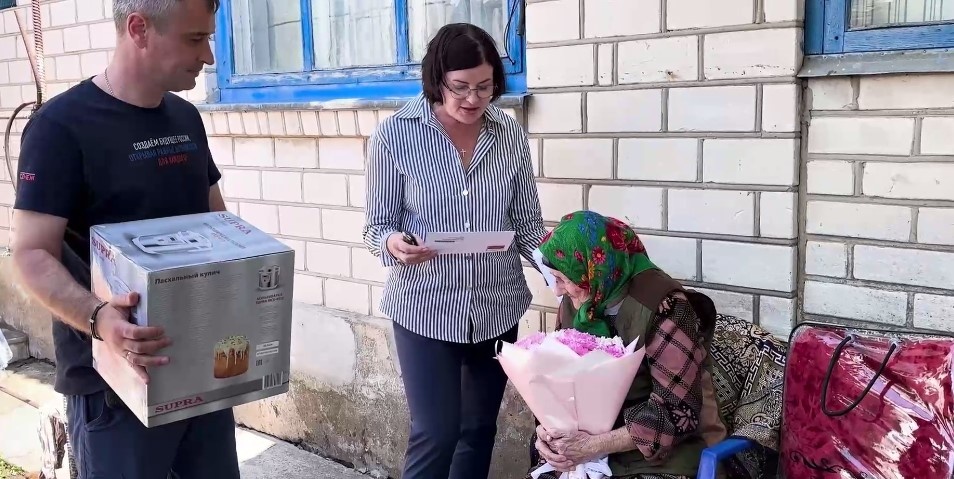 Министр труда и социальной защиты Херсонской области Алла Бархатнова приехала поздравить с днем рождения Марию Капустюк со 100-летним юбилеем. Глава ведомства зачитала имениннице поздравления от Президента России Владимира Путина, а также вручила в качестве подарков теплый плед и скороварку. «На долю вашего поколения выпали и серьезные испытания, и поистине исторические триумфы. Сегодня ваш жизненный путь, любовь к Родине, сопричастность к ее судьбе являются достойным примером для молодежи, для всех нас. Желаю вам здоровья и всего самого наилучшего», — говорится в поздравлении Президента. Ранее ТРК «Таврия» сообщала, что на Херсонщине поздравили с 93-летием жительницу, имеющую статус «Дети войны». В Херсонской области активисты «Единой России» навестили жительницу Горностаевского округа, имеющую статус «Дети войны». Волонтеры поздравили ее с 93-летием. Любовь Николаевна проживает в селе Дубовка. Активисты вручили ей цветы и подарки.