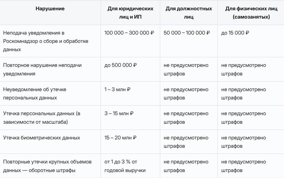 ⚡️Новые штрафы за нарушение в работе с персональными данными с 30 мая 2025: Что нужно знать бизнесу и маркетологам 📅 С 30 мая 2025 года вступили в силу серьёзные изменения в законодательстве о персональных данных, усиливающие ответственность за нарушения. Эти изменения касаются практически всех, кто собирает, хранит или обрабатывает личные данные — от крупных компаний до самозанятых и ИП. ⚠️ В случае серьёзного ущерба от утечки возможна уголовная ответственность — вплоть до 4 лет лишения свободы. ✔️Кого затрагивают новые правила? 1) Юридические лица, ИП и самозанятые, которые собирают и обрабатывают персональные данные сотрудников, клиентов, контрагентов. 2) Даже если вы ведёте небольшой бизнес и записываете имена и телефоны клиентов — вы оператор персональных данных и обязаны уведомлять об этом Роскомнадзор. Персональными данными считаются любые сведения, позволяющие идентифицировать человека: ФИО, адрес, телефон, дата рождения, сведения о работе, паспортные данные и др. ✔️ Чт