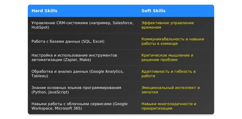 Базовые навыки: Google Workspace, Trello. Потенциал: освоил основы работы с CRM за 3 месяца.