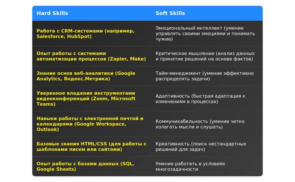 1. Базовые навыки: MS Office, Google Workspace, основы работы с CRM.