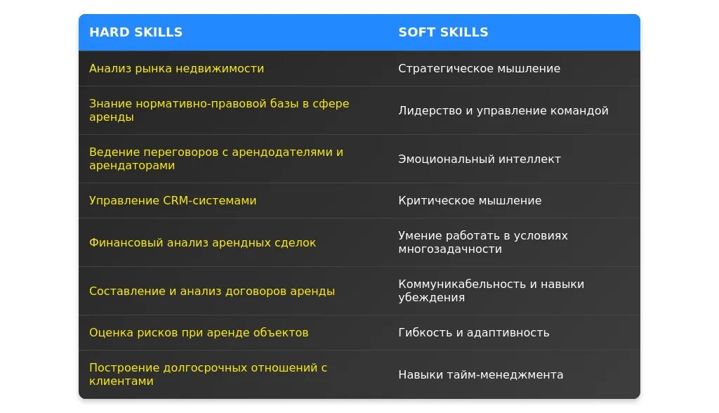После адаптации: "Навыки ведения переговоров и заключения договоров с арендаторами."