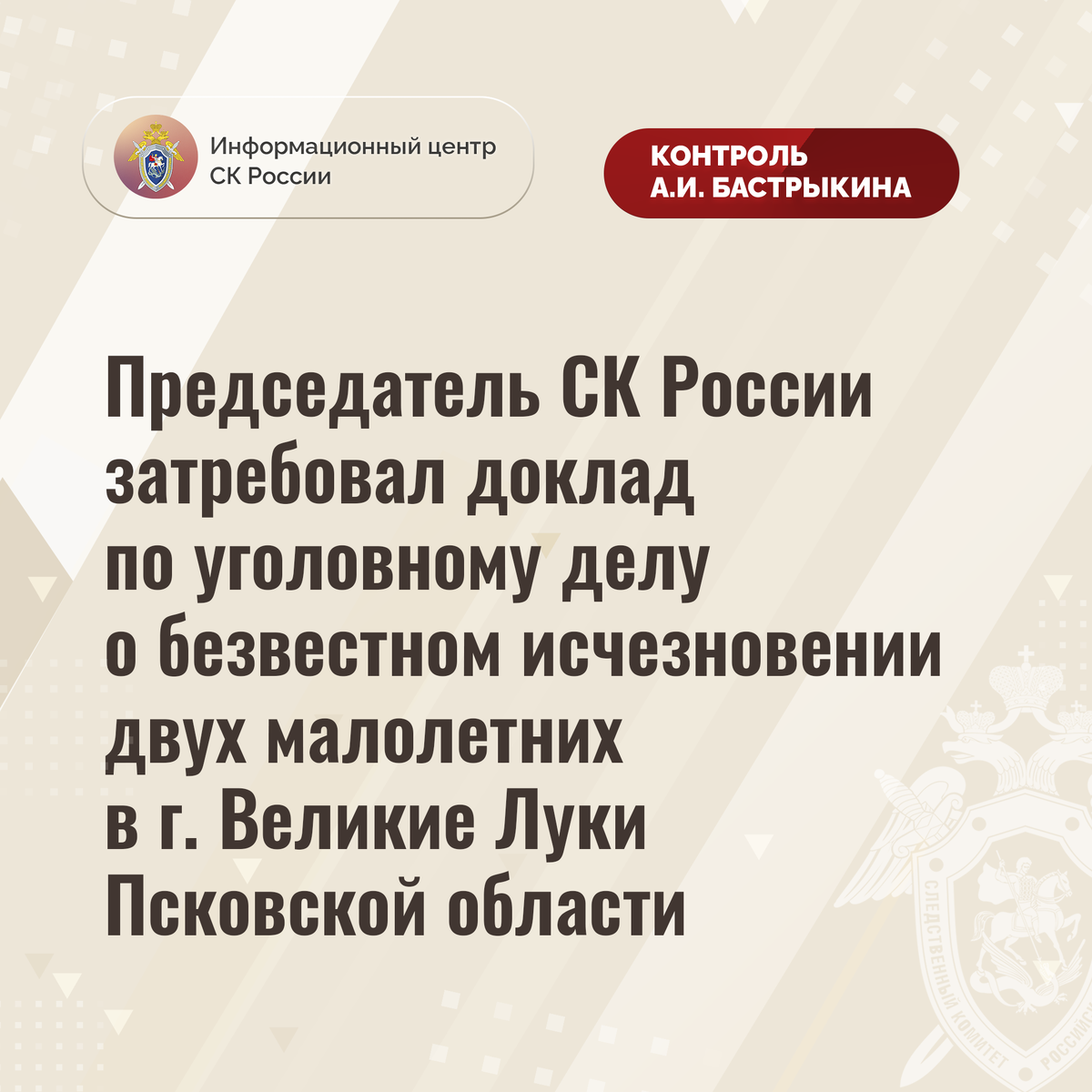 Председатель СК России затребовал доклад по уголовному делу о безвестном исчезновении двух малолетних в г. Великие Луки Псковской области