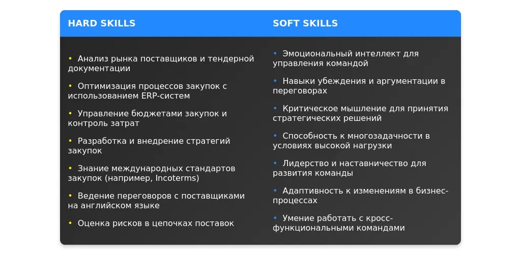 Выделите навыки, которые наиболее востребованы в вашей отрасли. Например: