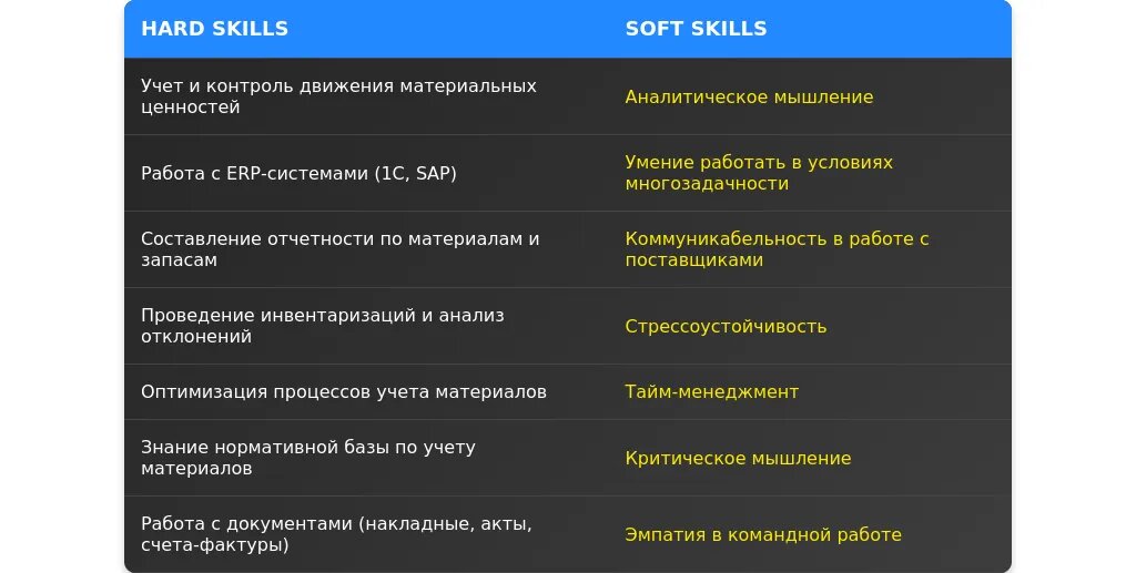 Работа с ключевыми словами: используйте термины из вакансии, такие как "учет материалов", "инвентаризация", "оптимизация процессов".