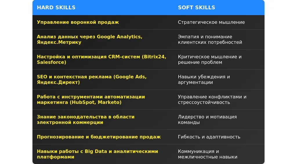 Анализ требований вакансии для руководителя интернет-продаж